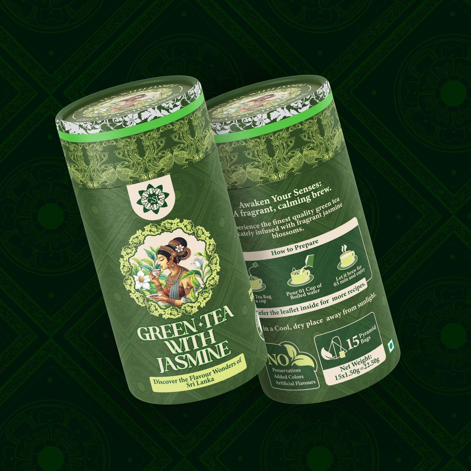 Each pack features a hand-drawn character inspired by traditional Lankan art, blending history with elegance. The floral motifs, intricate patterns, and vibrant hues elevate the product’s shelf appeal while clearly differentiating each variant.