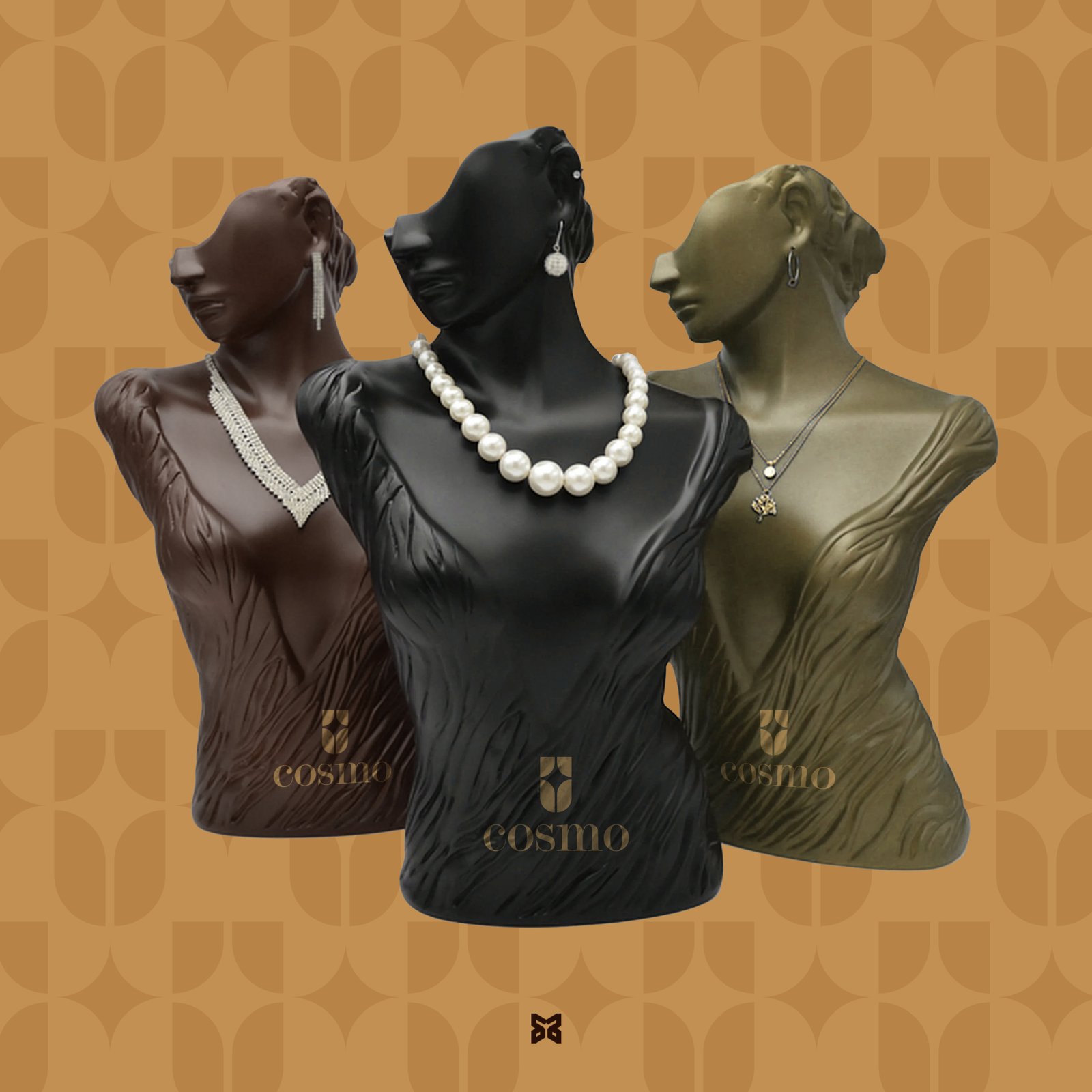 Cosmo is a premium jewelry manufacturer focused on elegant craftsmanship and timeless beauty. The brand needed a luxurious yet modern identity that would appeal to both high-end consumers and retail partners. We designed a refined logo inspired by classic emblems and goldsmith artistry, paired with a warm, regal color palette and clean serif typography.