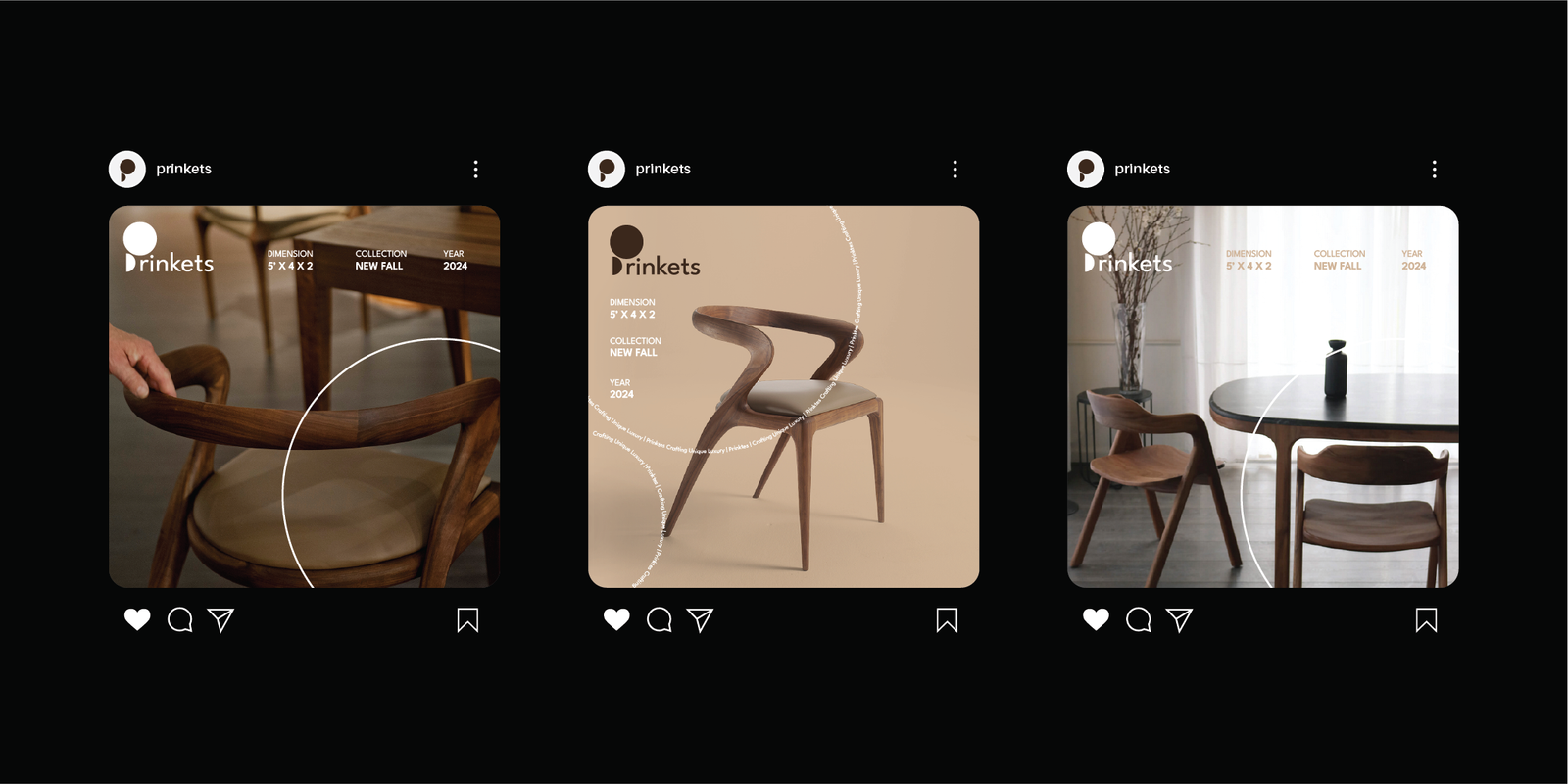 Prinkets is a luxury furniture company specializing in bespoke, handcrafted wooden pieces. The brand needed an identity that communicates both sophistication and craftsmanship. We developed a sleek, high-end branding system featuring minimalist typography and a neutral-toned visual system that highlights product elegance. Every detail—from the logo to the product displays—was designed to reflect exclusivity and artisanal excellence, positioning Prinkets as a top-tier name in luxury interiors.
